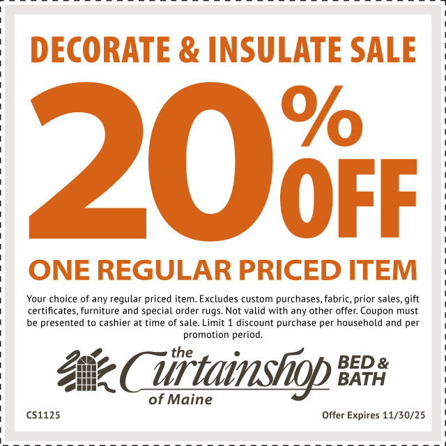 Decorate & Insulate - Save money on heat and on some great items for your home this fall! Sale ends November 30th.